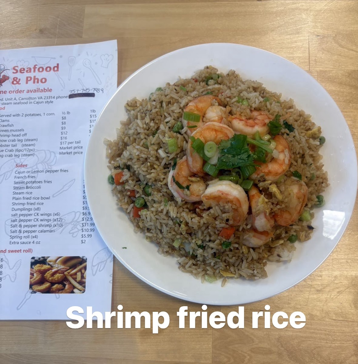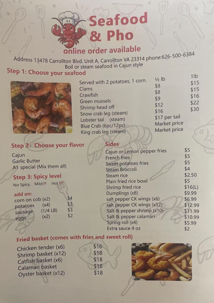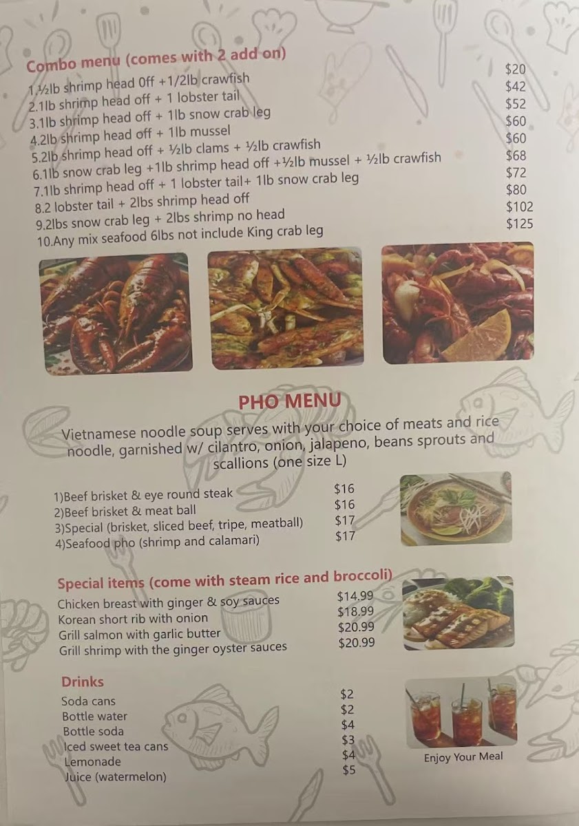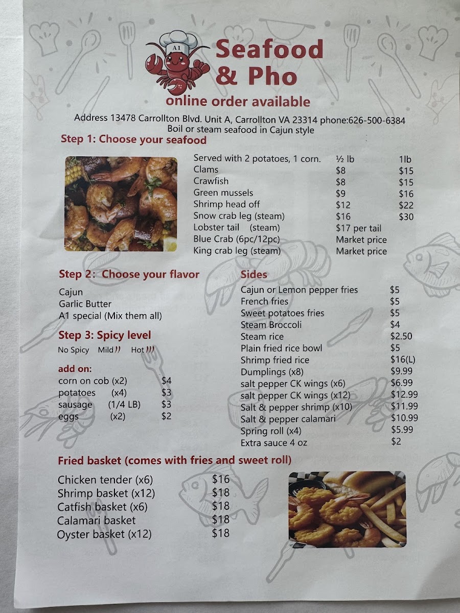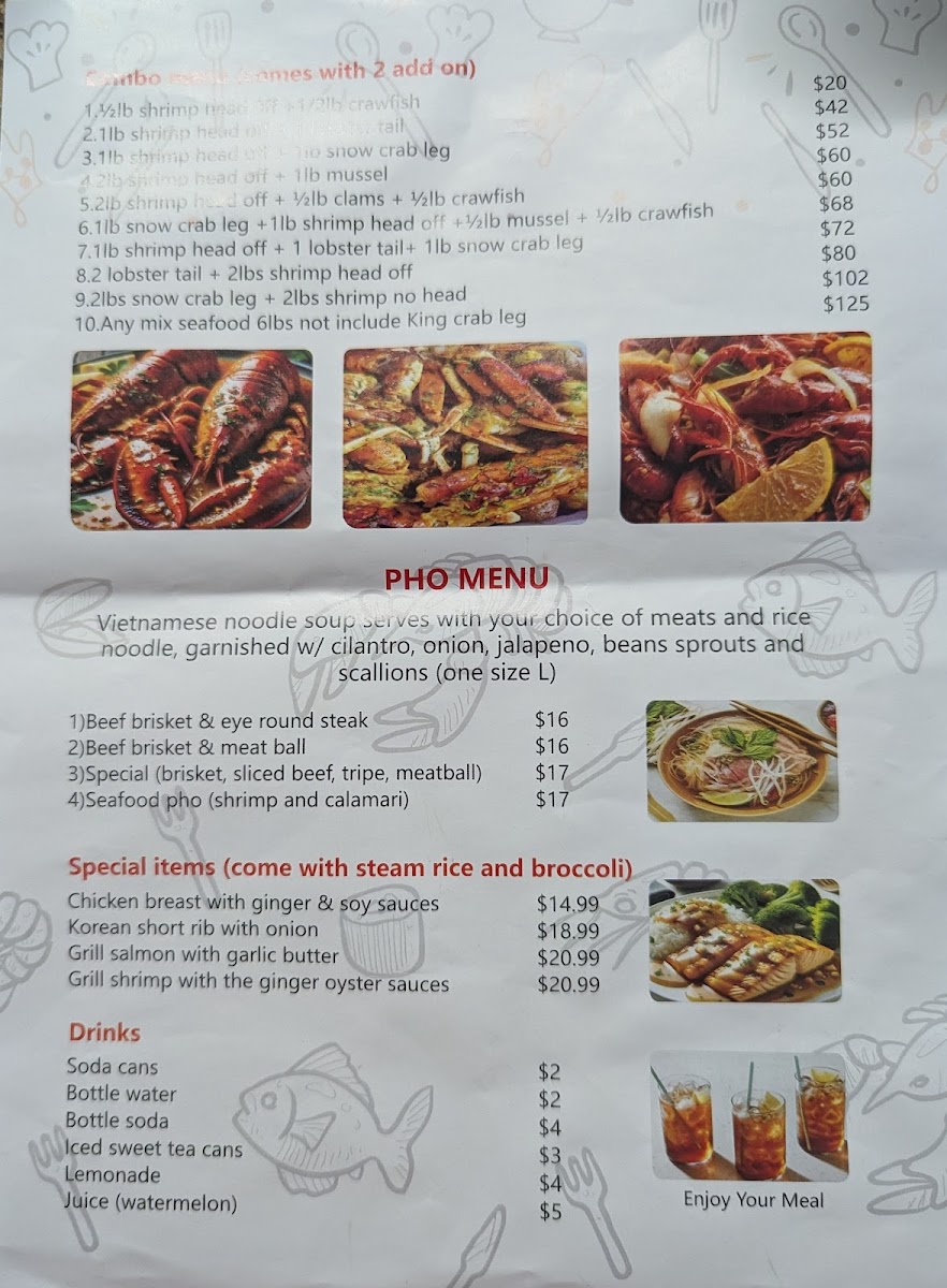 Introducing SEAFOOD & PHO, a delightful gem nestled in Carrollton, VA, specializing in Cajun-style seafood and authentic pho. This inviting restaurant offers an exquisite menu that combines the bold flavors of Cajun seafood boils, perfectly cooked with hearty potatoes and corn, with a variety of pho options, including Beef Brisket & Eye Round and a tantalizing Seafood Pho featuring shrimp and calamari. Diners rave about the generous portions and freshness of the ingredients, echoing sentiments like “well made and delicious.” The dim sum selection, featuring dishes like Steam Short Rib and Prawn Hacao, adds an enticing variety to the menu.